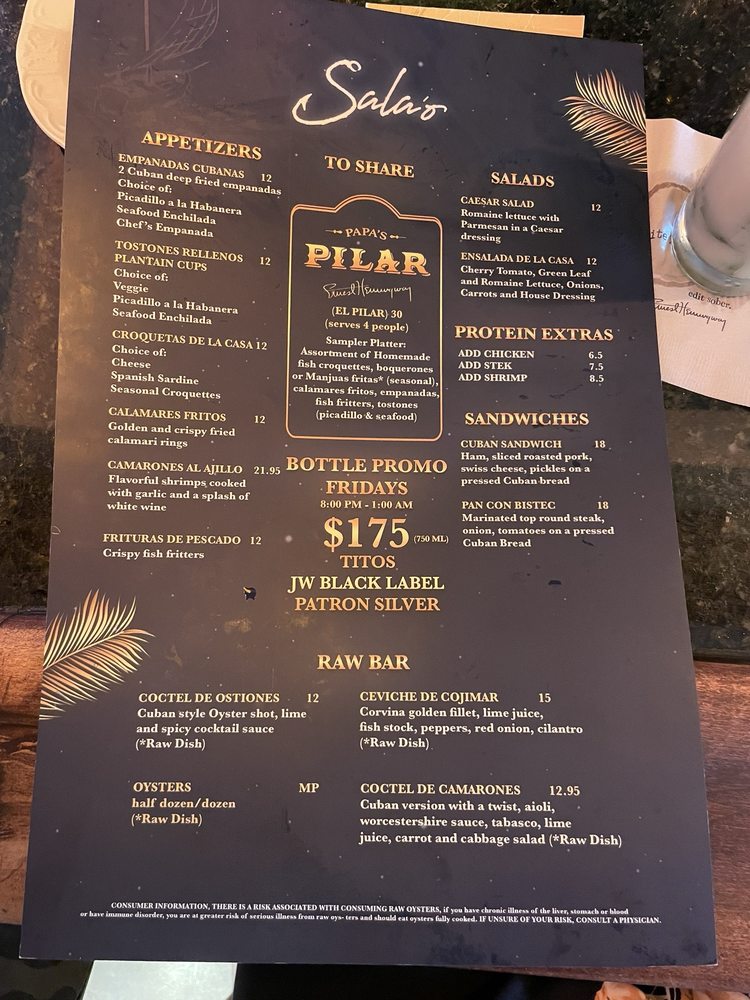 Sala'o Cuban Restaurant & Bar in Miami offers a vibrant and lively atmosphere with live music, top-notch service, and delicious Cuban cuisine. The restaurant is a gem that showcases a mix of casual, trendy, and classy vibes. Guests can enjoy a wide range of vegan and vegetarian options in a wheelchair-accessible space with outdoor seating. The menu boasts mouthwatering dishes like Cuban crackers with dip, calamari, Pollo Guajiro, Lonjas Lechon de Asado, empanadas, and Chuleta de Cerdo. The food is described as flavorful, tender, juicy, and perfectly balanced. From the flaky empanadas to the juicy pork chop, every bite is a culinary delight. The friendly staff, quick service, and warm ambiance make Sala'o a must-visit spot in Little Havana for a memorable dining experience. Make sure to try their cocktails, as they flow freely to complement the fantastic flavors on your plate. A visit to Sala'o Cuban Restaurant & Bar promises a gastronomic adventure filled with music, great food, and warm hospitality.